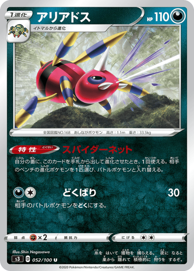 自分の番に、このカードを手札から出して進化させたとき、1回使える。相手のベンチの進化ポケモンを1匹選び、バトルポケモンと入れ替える。