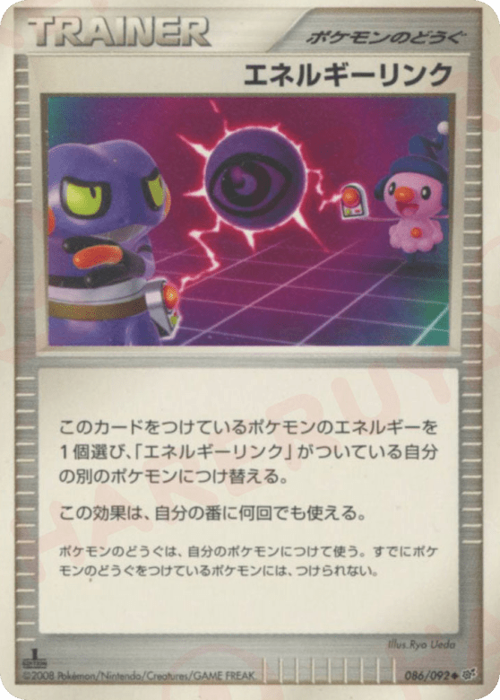 このカードをつけているポケモンのエネルギーを1個選び、「エネルギーリンク」がついている自分の別のポケモンにつけ替える。<br> この効果は、自分の番に何回でも使える。