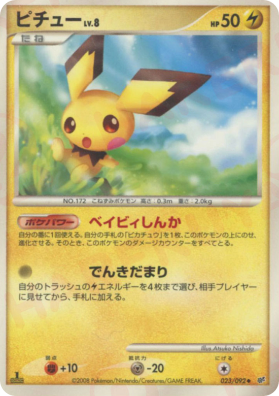Once during your turn (before your attack), you may put Pikachu from your hand onto Pichu (this counts as evolving Pichu) and remove all damage counters from Pichu.