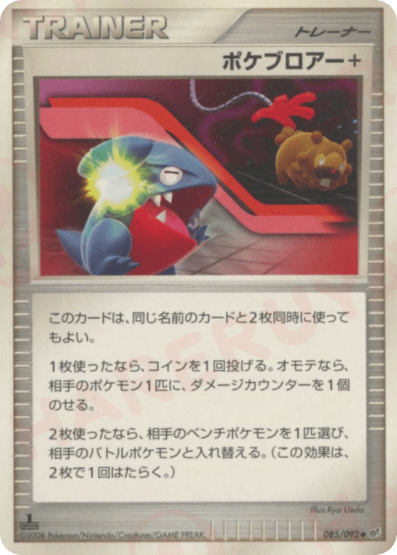 このカードは、同じ名前のカードと2枚同時に使ってもよい。<br> 1枚使ったなら、コインを1回投げる。オモテなら、相手のポケモン1匹に、ダメージカウンターを1個のせる。<br> 2枚使ったなら、相手のベンチポケモンを1匹選び、相手のバトルポケモンと入れ替える。(この効果は、2枚で1回はたらく。) グッズは、自分の番に何枚でも使える。