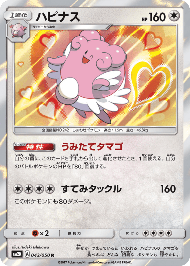 幸せが つまっていると いわれる ハピナスの タマゴを 食べれば どんな 凶暴な ポケモンも 穏やかに。