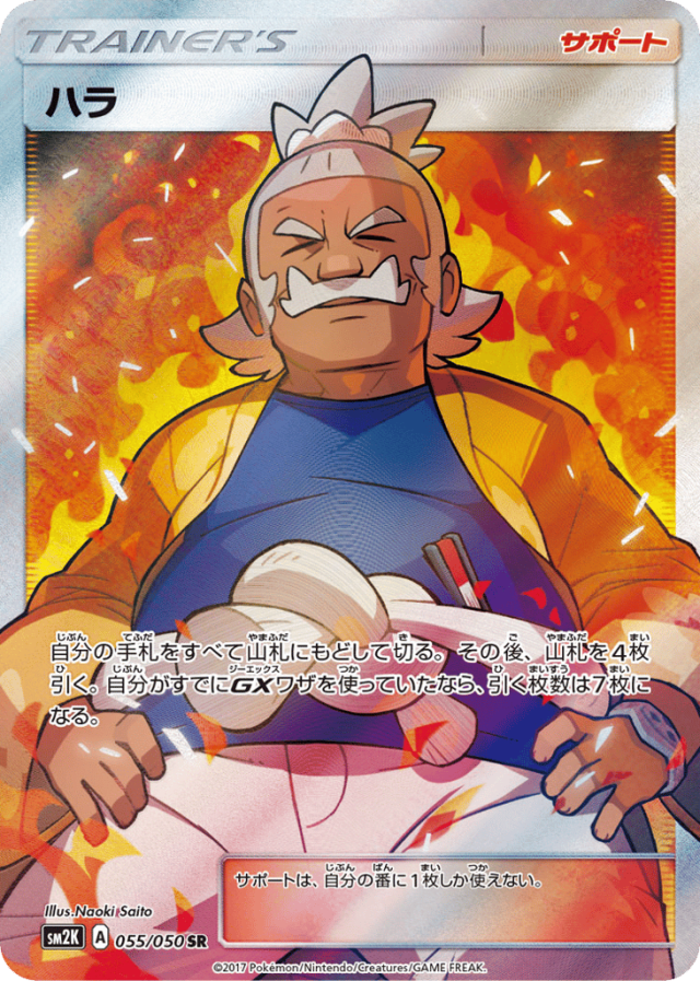自分の手札をすべて山札にもどして切る。その後、山札を4枚引く。自分がすでにGXワザを使っていたなら、引く枚数は7枚になる。 サポートは、自分の番に1枚しか使えない。