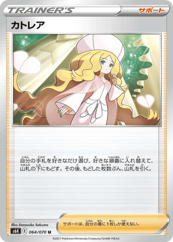 自分の手札を好きなだけ選び、好きな順番に入れ替えて、山札の下にもどす。その後、もどした枚数ぶん、山札を引く。 サポートは、自分の番に1枚しか使えない。
