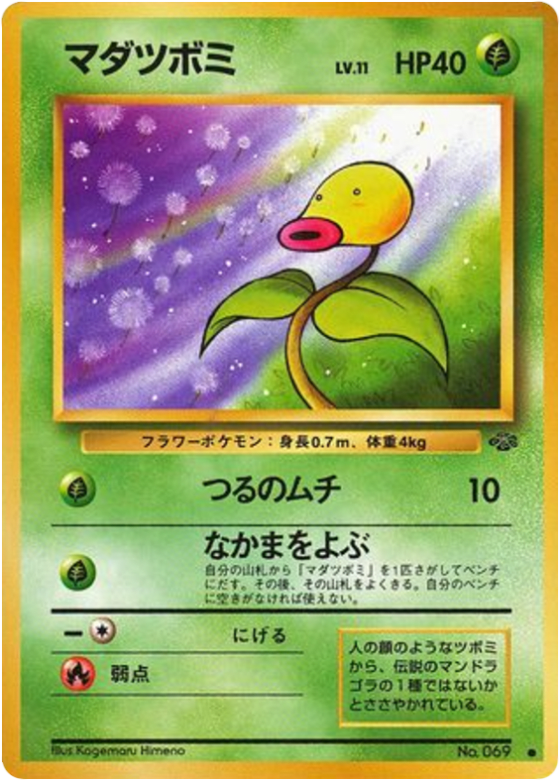 Search your deck for a Basic Pokémon named Bellsprout and put it onto your Bench. Shuffle your deck afterward. (You can't use this attack if your Bench is full.)