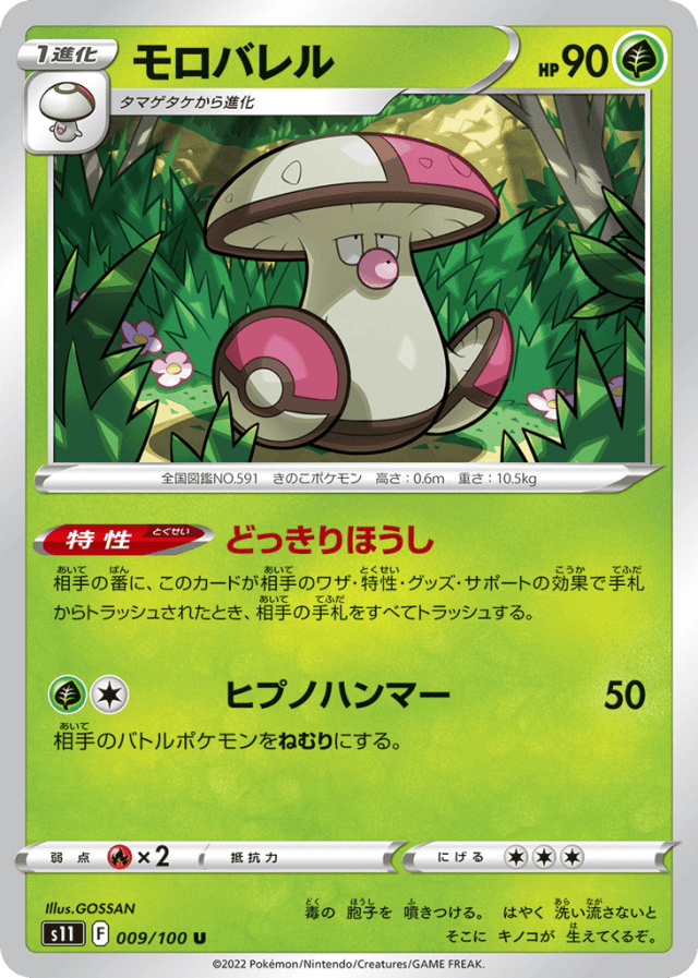 相手の番に、このカードが相手のワザ・特性・グッズ・サポートの効果で手札からトラッシュされたとき、相手の手札をすべてトラッシュする。