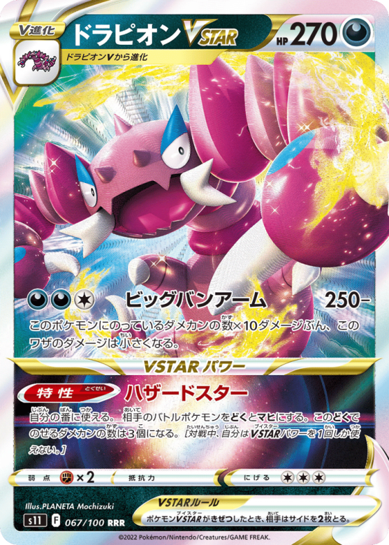 自分の番に使える。相手のバトルポケモンをどくとマヒにする。このどくでのせるダメカンの数は3個になる。[対戦中、自分はVSTARパワーを1回しか使えない。]