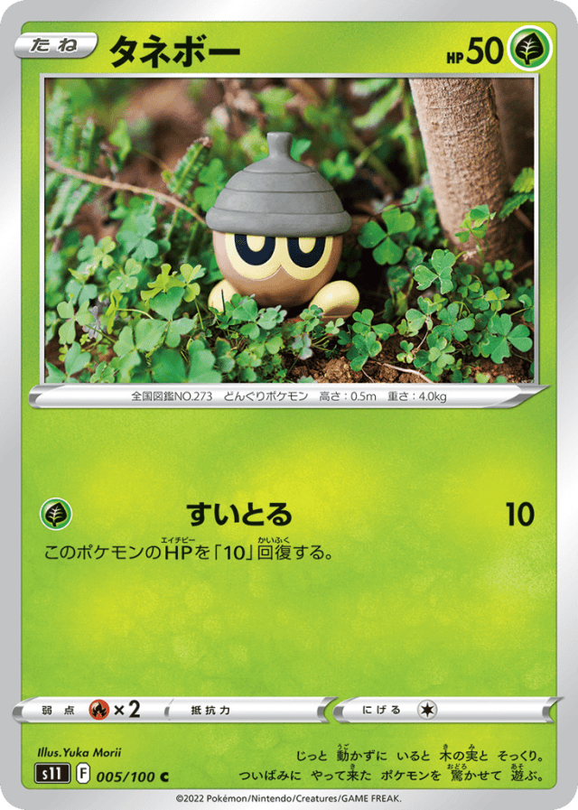じっと 動かずに いると 木の実と そっくり。 ついばみに やって来た ポケモンを 驚かせて 遊ぶ。