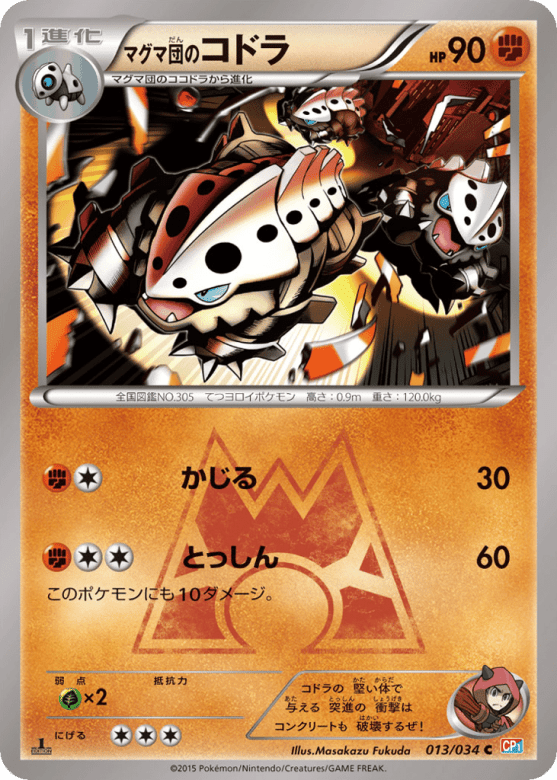 コドラの 堅い体で 与える 突進の 衝撃は コンクリートも 破壊するぜ!