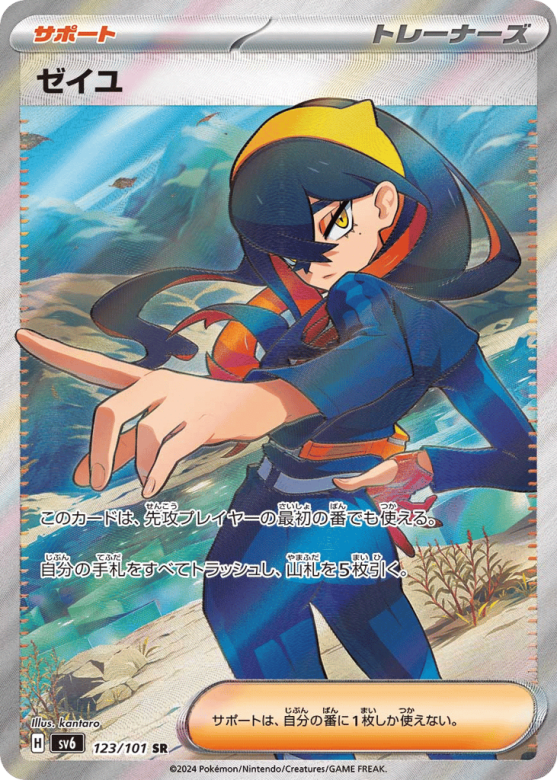 このカードは、先攻プレイヤーの最初の番でも使える。 自分の手札をすべてトラッシュし、山札を5枚引く。 サポートは、自分の番に1枚しか使えない。