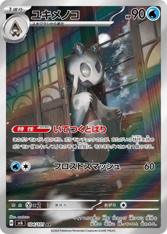 このポケモンがいるかぎり、ポケモンチェックのたび、おたがいの特性を持つポケモン(「ユキメノコ」をのぞく)全員に、それぞれダメカンを1個のせる。