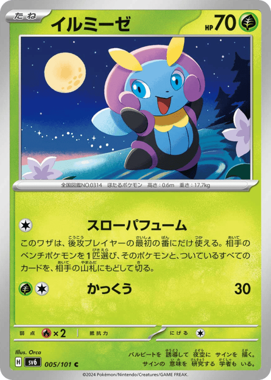 このワザは、後攻プレイヤーの最初の番にだけ使える。相手のベンチポケモンを1匹選び、そのポケモンと、ついているすべてのカードを、相手の山札にもどして切る。