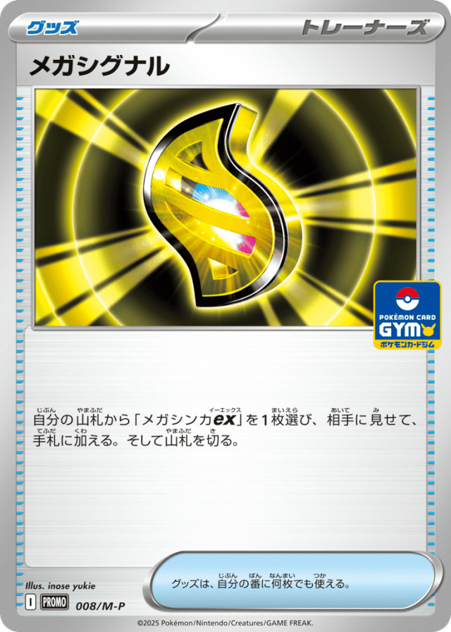 自分の山札から「メガシンカex」を1枚選び、相手に見せて、手札に加える。そして山札を切る。 グッズは、自分の番に何枚でも使える。