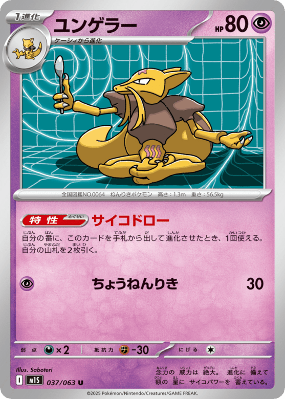 自分の番に、このカードを手札から出して進化させたとき、1回使える。自分の山札を2枚引く。