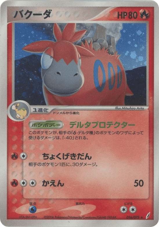 Any damage done to Camerupt by attacks from your opponent's Pokémon that has δ on its card is reduced by 40 (after applying Weakness and Resistance).