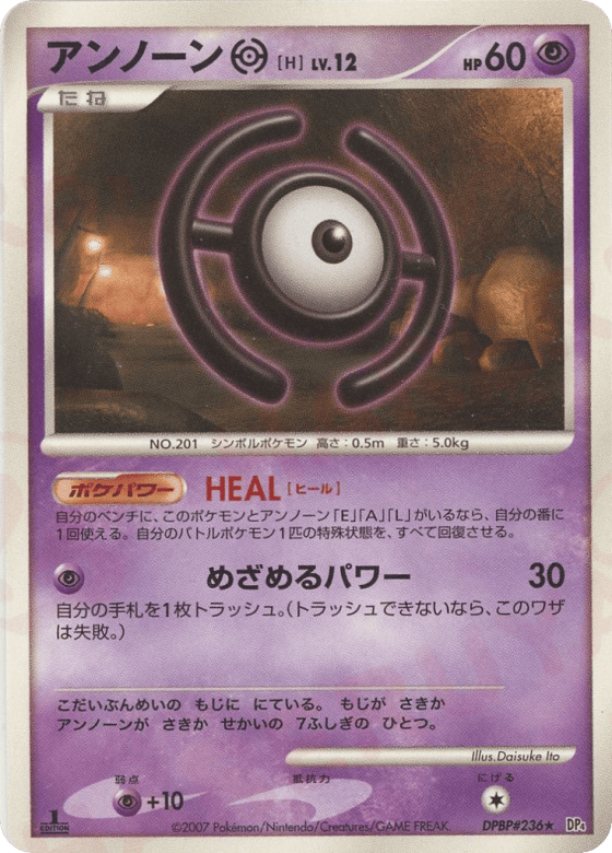 Once during your turn (before your attack), if you have Unown H, Unown E, Unown A, and Unown L on your Bench, you may remove all Special Conditions from 1 of your Active Pokémon.