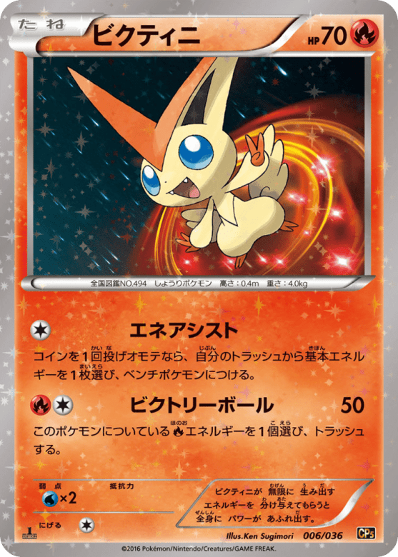ビクティニが 無限に 生み出す エネルギーを 分け与えてもらうと 全身に パワーが あふれ出す。