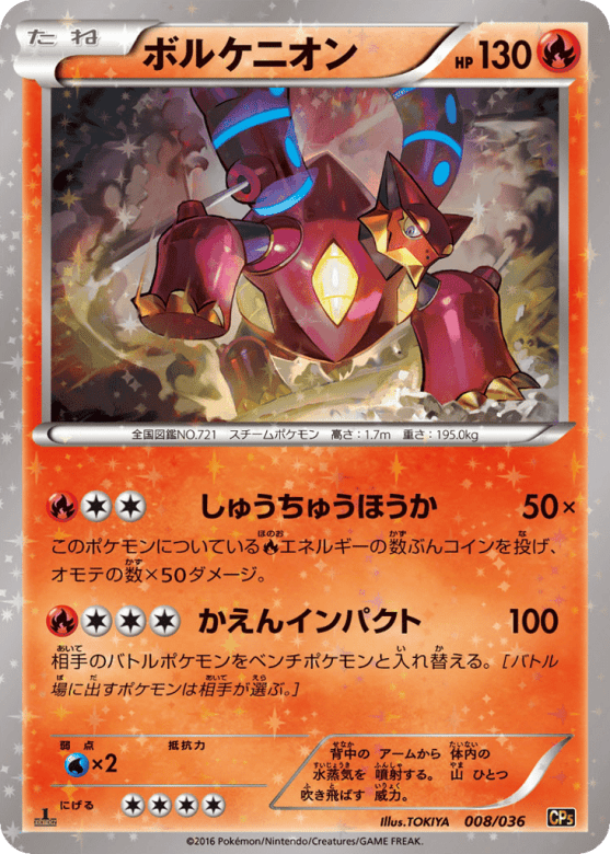 このポケモンについているFireエネルギーの数ぶんコインを投げ、オモテの数×50ダメージ。