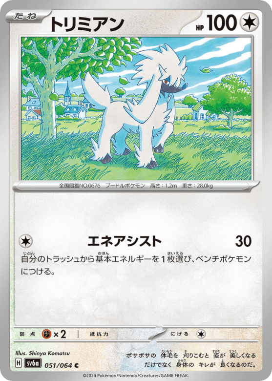 自分のトラッシュから基本エネルギーを1枚選び、ベンチポケモンにつける。