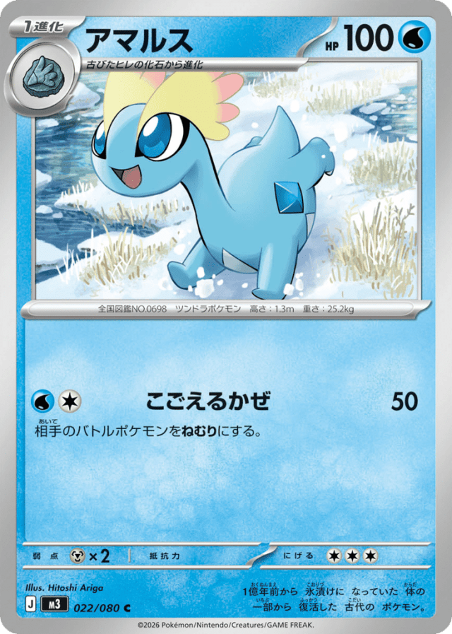 1億年前から 氷漬けに なっていた 体の 一部から 復活した 古代の ポケモン。