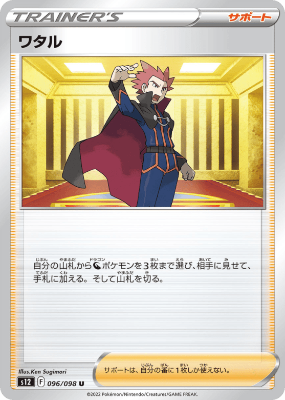 自分の山札からDragonポケモンを3枚まで選び、相手に見せて、手札に加える。そして山札を切る。 サポートは、自分の番に1枚しか使えない。