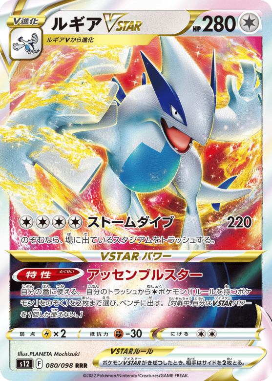 自分の番に使える。自分のトラッシュからColorlessポケモン(「ルールを持つポケモン」をのぞく)を2枚まで選び、ベンチに出す。[対戦中、自分はVSTARパワーを1回しか使えない。]