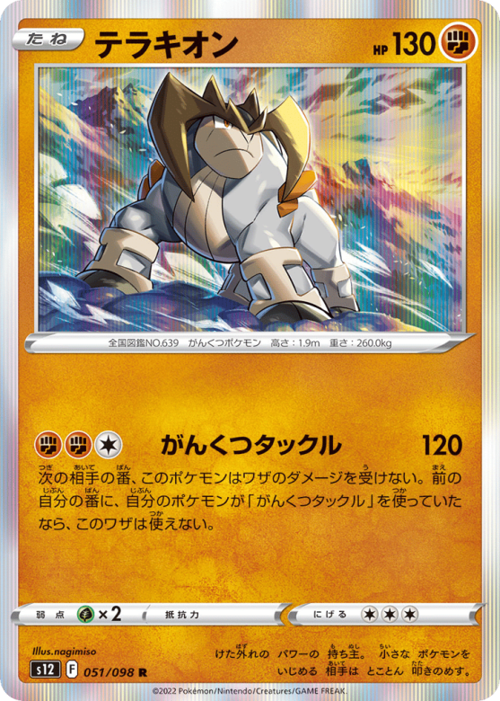 次の相手の番、このポケモンはワザのダメージを受けない。前の自分の番に、自分のポケモンが「がんくつタックル」を使っていたなら、このワザは使えない。