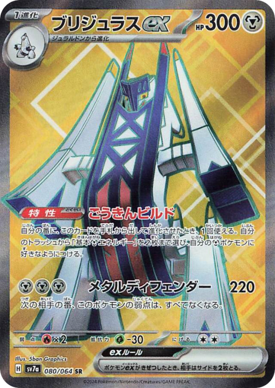 When you play this Pokémon from your hand to evolve 1 of your Pokémon during your turn, you may attach up to 2 Basic Metal Energy cards from your discard pile to your Metal Pokémon in any way you like.