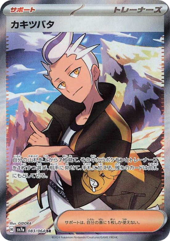 Look at the top 7 cards of your deck. You may reveal a Pokémon and a Trainer card you find there and put them into your hand. Shuffle the other cards back into your deck. You may play only 1 Supporter card during your turn.