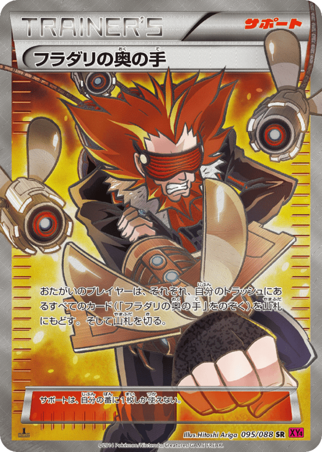 おたがいのプレイヤーは、それぞれ、自分のトラッシュにあるすべてのカード(「フラダリの奥の手」をのぞく)を山札にもどす。そして山札を切る。 サポートは、自分の番に1枚しか使えない。