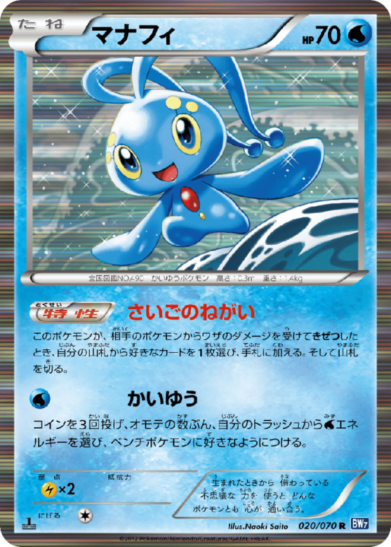 コインを3回投げ、オモテの数ぶん、自分のトラッシュからWaterエネルギーを選び、ベンチポケモンに好きなようにつける。