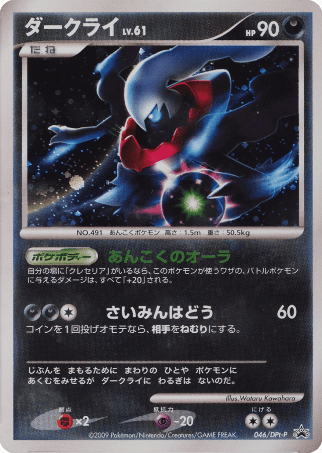 If you have Cresselia in play, each of Darkrai's attacks does 20 more damage to the Defending Pokémon (before applying Weakness and Resistance).