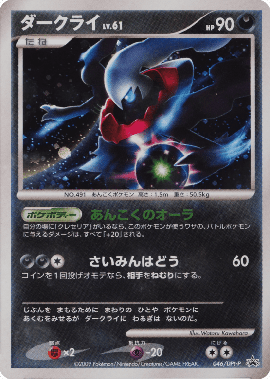 If you have Cresselia in play, each of Darkrai's attacks does 20 more damage to the Defending Pokémon (before applying Weakness and Resistance).