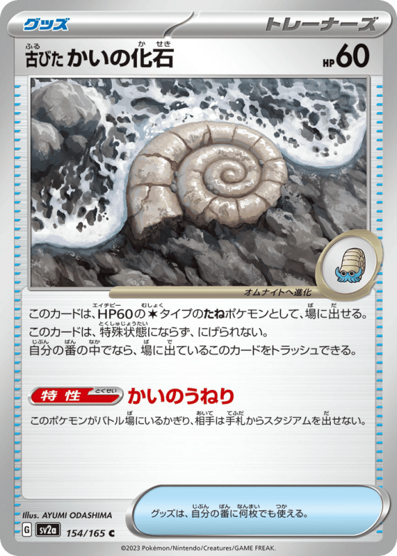 このカードは、HP60のColorlessタイプのたねポケモンとして、場に出せる。このカードは、特殊状態にならず、にげられない。 自分の番の中でなら、場に出ているこのカードをトラッシュできる。 グッズは、自分の番に何枚でも使える。