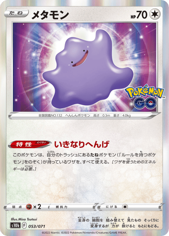 このポケモンは、自分のトラッシュにあるたねポケモン(「ルールを持つポケモン」をのぞく)が持っているワザを、すべて使える。[ワザを使うためのエネルギーは必要。]