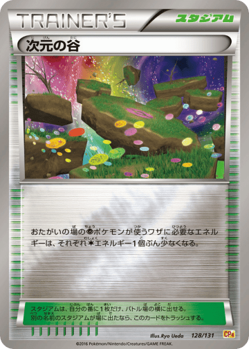 おたがいのプレイヤーがベンチに出せるポケモンの数は、8匹になる。 (このカードがトラッシュされたとき、ベンチに6匹以上いるプレイヤーは、ベンチが5匹になるまでポケモンをトラッシュする。トラッシュするのは、このカードの持ち主から。) スタジアムは、自分の番に1枚だけ、バトル場の横に出せる。別の名前のスタジアムが場に出たなら、このカードをトラッシュする。
