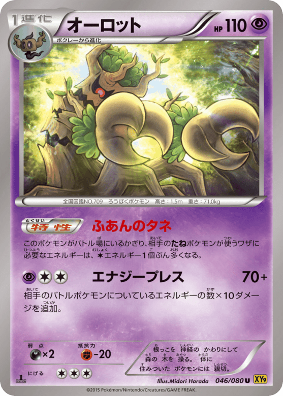 このポケモンがバトル場にいるかぎり、相手のたねポケモンが使うワザに必要なエネルギーは、Colorlessエネルギー1個ぶん多くなる。