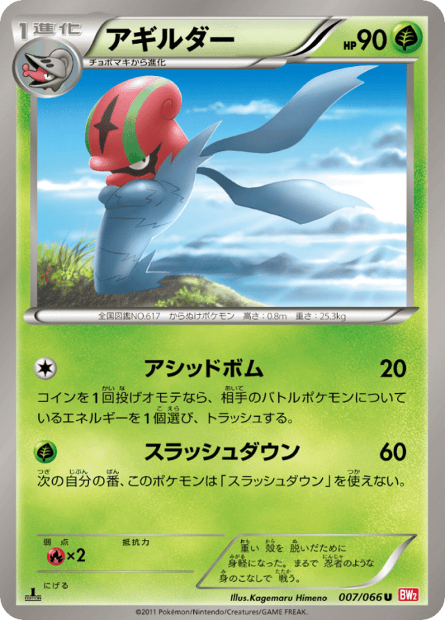 コインを1回投げオモテなら、相手のバトルポケモンについているエネルギーを1個選び、トラッシュする。