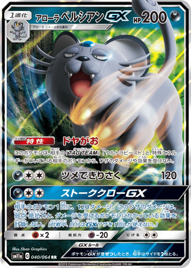 相手のポケモン1匹に、120ダメージ。このワザのダメージは、弱点・抵抗力と、ダメージを受けるポケモンにかかっている効果を計算しない。[対戦中、自分はGXワザを1回しか使えない。]