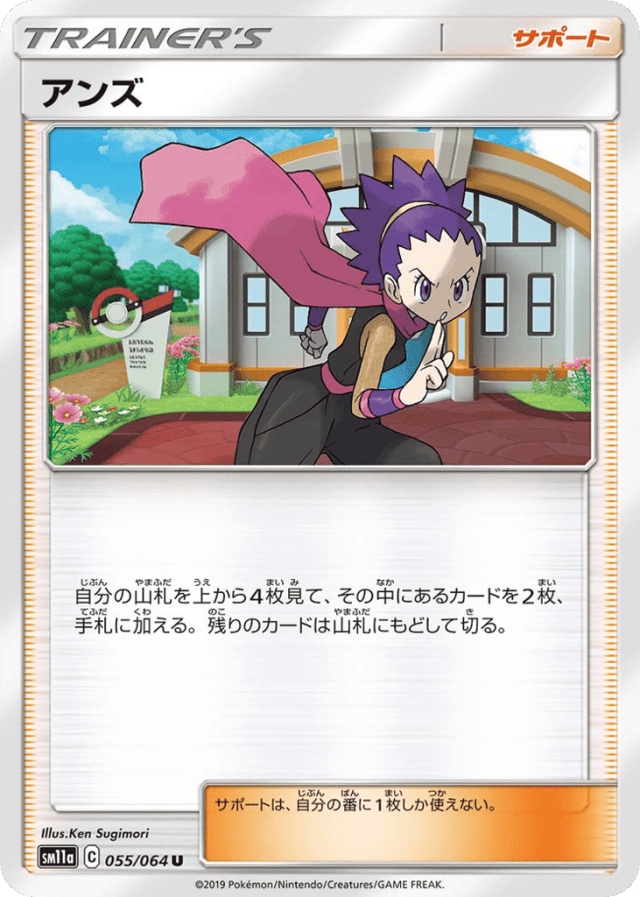 自分の山札を上から4枚見て、その中にあるカードを2枚、手札に加える。残りのカードは山札にもどして切る。 サポートは、自分の番に1枚しか使えない。