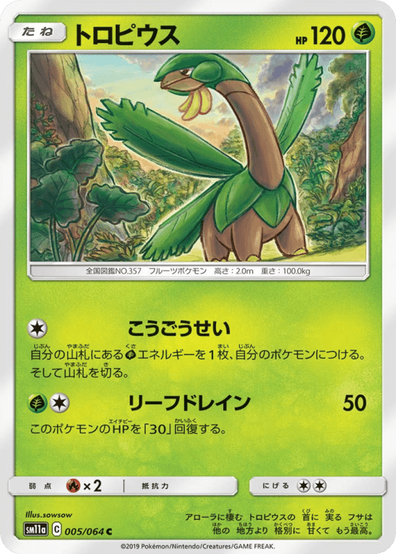 アローラに棲む トロピウスの 首に 実る フサは 他の 地方より 格別に 甘くて もう最高。