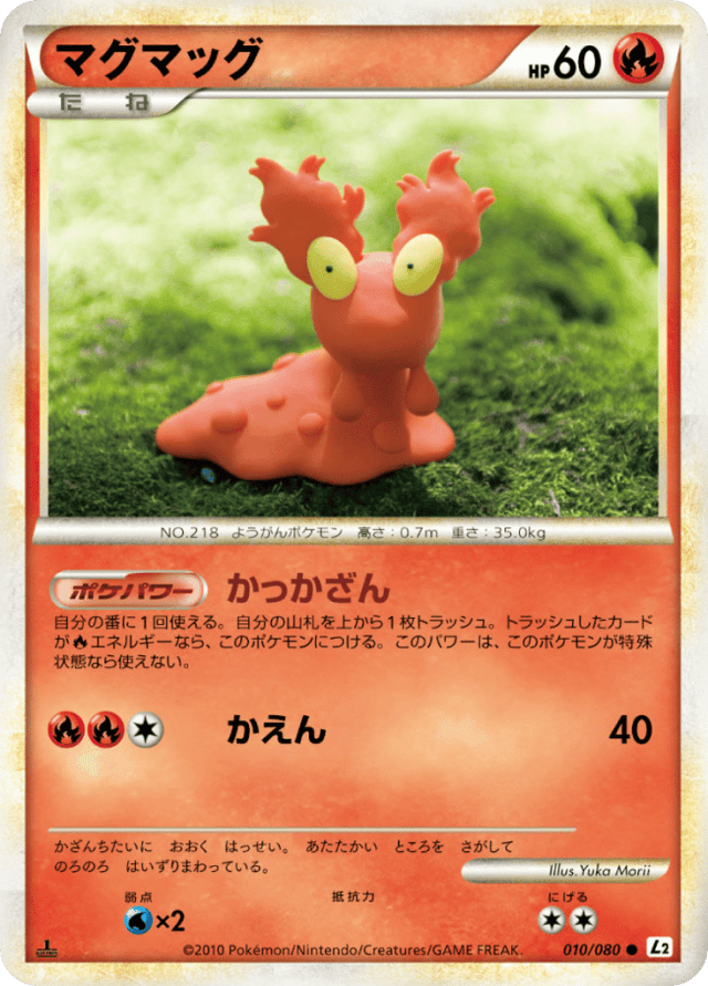 Once during your turn (before your attack), you may discard the top card of your deck. If that card is a Fire Energy card, attach it to Slugma. This power can't be used if Slugma is affected by a Special Condition.