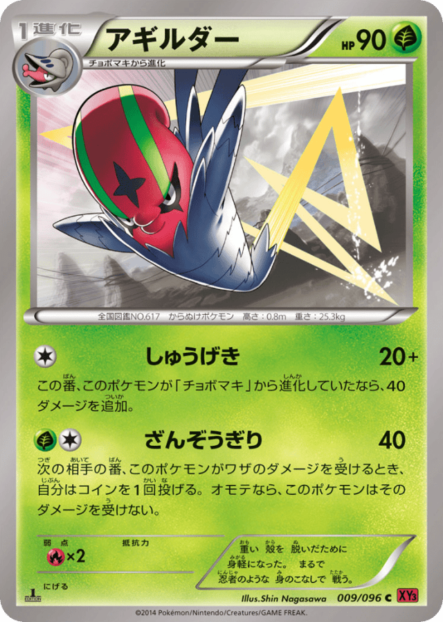 次の相手の番、このポケモンがワザのダメージを受けるとき、自分はコインを1回投げる。オモテなら、このポケモンはそのダメージを受けない。