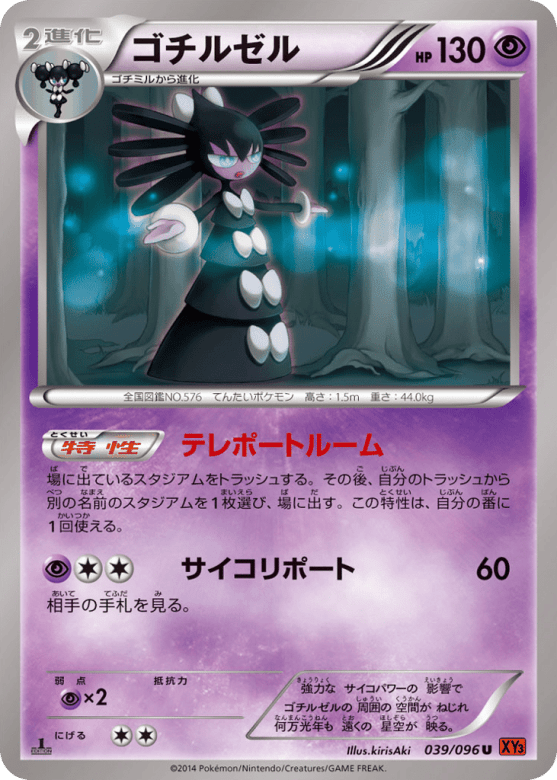 場に出ているスタジアムをトラッシュする。その後、自分のトラッシュから別の名前のスタジアムを1枚選び、場に出す。この特性は、自分の番に1回使える。