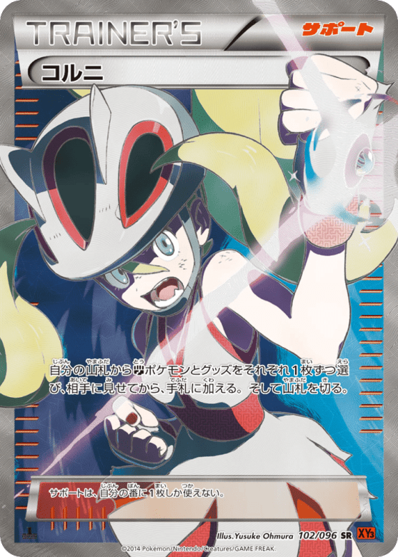 自分の山札からFightingポケモンとグッズをそれぞれ1枚ずつ選び、相手に見せてから、手札に加える。そして山札を切る。 サポートは、自分の番に1枚しか使えない。