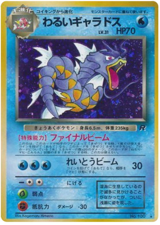 When Dark Gyarados is Knocked Out by an attack, flip a coin. If heads, this power does 20 damage for each Water Energy attached to Dark Gyarados to the Pokémon that Knocked Out Dark Gyarados. Apply Weakness and Resistance. This power doesn't work if Dark Gyarados is Asleep, Confused, or Paralyzed.