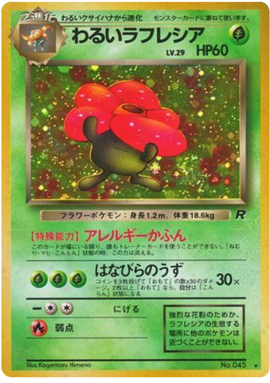 Flip 3 coins. This attack does 30 damage times the number of heads. If you get 2 or more heads, Dark Vileplume is now Confused (after doing damage).