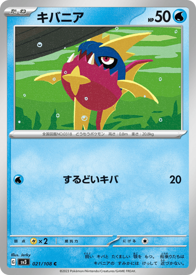 鋭い キバと たくましい 顎を もつ。 船乗りたちは キバニアの すみかには けっして 近づかない。