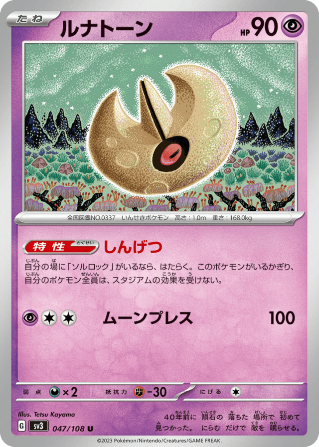 自分の場に「ソルロック」がいるなら、はたらく。このポケモンがいるかぎり、自分のポケモン全員は、スタジアムの効果を受けない。
