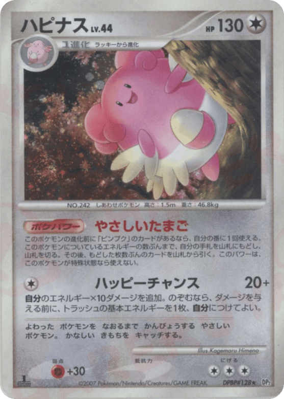 Once during your turn (before your attack), if Happiny is anywhere under Blissey, you may choose a number of cards in your hand up to the amount of Energy attached to Blissey and put those cards on top of your deck. Shuffle your deck afterward. Then, draw that many cards. This power can't be used if Blissey is affected by a Special Condition.