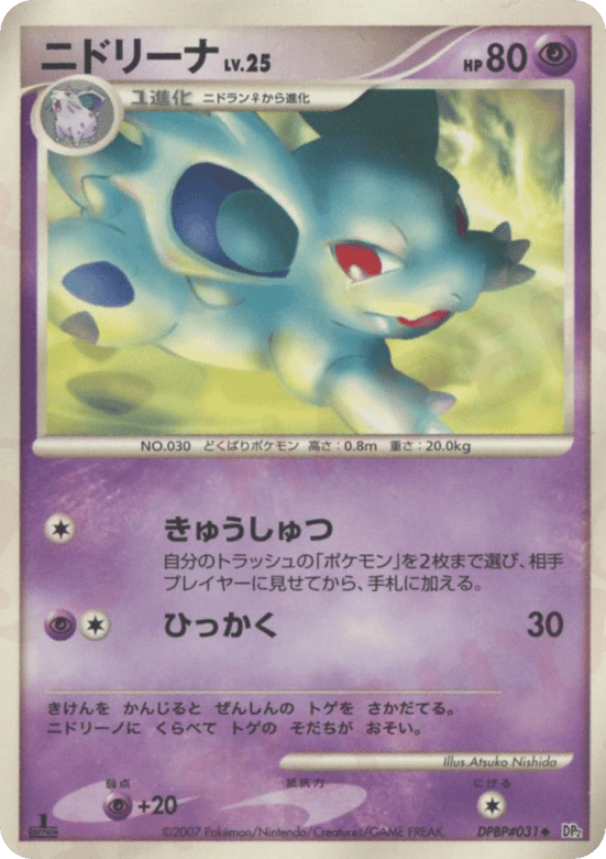 きけんを かんじると ぜんしんの トゲを さかだてる。ニドリーノに くらべて トゲの そだちが おそい。